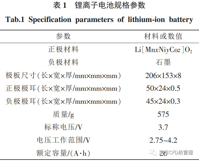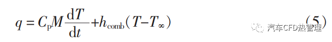 式中:等号右侧第 1 部分代表单位时间存储在电池 中的热量,等号右侧第 2 部分代表单位时间电池表 面与外界恒温环境通过对流换热散失的热量。