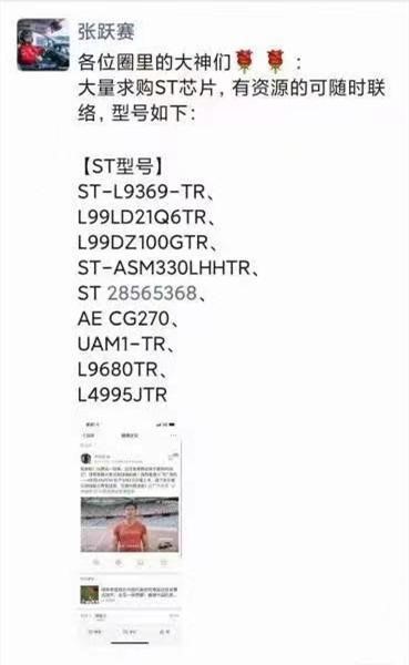 芯片,有资源的可随时联络”。并且在该消息中还附带了各种ST芯片的型号。