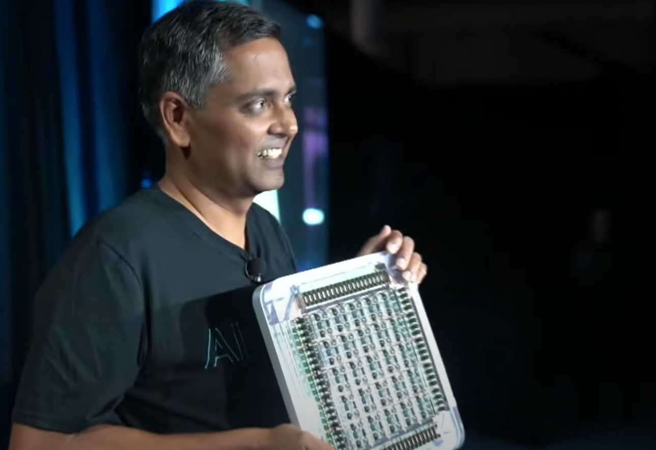 Dojo项目负责人Ganesh Venkataramanan展示D1芯片 / 特斯拉