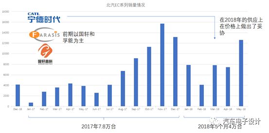 我觉得这里我们还是以EC180的案例来思考一下,一款车型如果需要往10万台车冲击,需要多少供应商。这个案例从整车企业来说还是非常经典的,前期通过国轩高科、孚能科技两家,在2017年下半年开始导入CATL的电芯,然后获得了非常主动的议价权。
