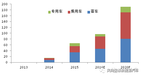 预计未来几年随着新能源汽车产销的持续增长,电机市场将呈现高速增长态势。预计2016年中国新能源汽车用电机市场规模将达到97亿市场规模,到2020年市场空间将突破190亿元。(注:不包括电机控制器,电机控制器将在另外的研究文章中详细分析)