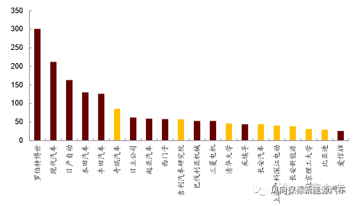图表10 1996~2015年全球新能源汽车电机专利申请前20名