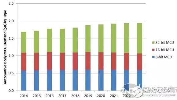 据Strategy Analytics的统计数据显示,2016年,在轻型汽车上安装的一半以上微控制器均用于车身应用,安装使用量超过13亿个。平均每辆车安装了将近15个车身MCU,截止2016年,安装在轻型汽车的MCU总价值就将近18亿美元,在汽车的MCU需求中,它的价值占到了30%的比例。