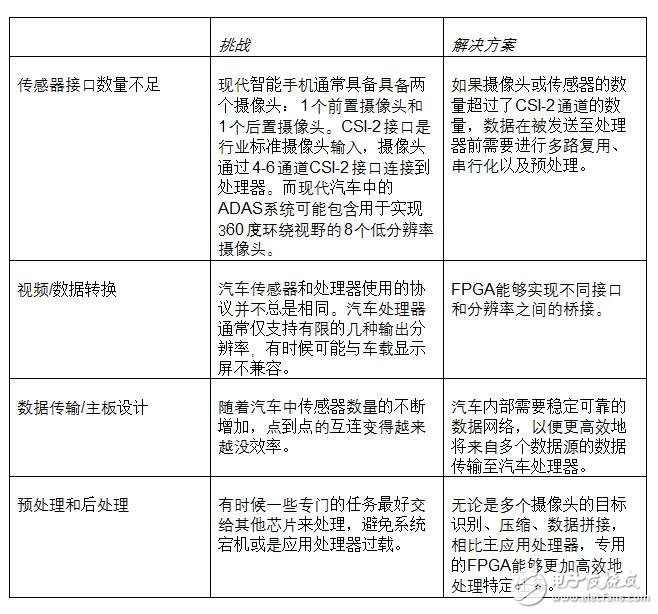 在许多行业中,FPGA的灵活性已被证明是非常有价值的。在汽车市场,FPGA可以帮助解决先进的娱乐和安全系统与移动处理器之间的不匹配问题。这种商业模式具有明显的优势,让汽车制造商能够使用来自智能手机领域经过大量市场验证的产品,并迅速适应汽车领域不断变化的需求。