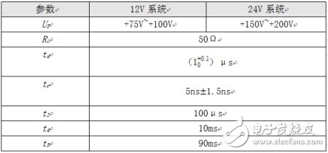脉冲5b:交流发电机正在产生充电电流、放过电的电池被断开时发生的抛负载(load-dump)瞬时脉冲,前提是交流发电机具有自动保护功能
