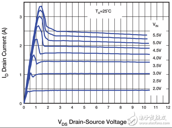 白炽灯关闭时电阻较低,当开灯后电阻会快速增加,温度也会上升。透过限流电路提供的过电流保护不仅可提供保护以避免故障,并可避免与灯具低导通电阻相关的高涌浪电流。限流电路可侦测因过载电流而产生的 MOSFET 汲源电压 (VDS) 大幅增加,并藉由降低内部闸极驱动及限制汲极电流 (ID) 进行因应。此功能可保护 MOSFET 并延长灯具寿命,其特性如图 4 所示。