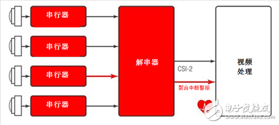 图3:解串器中心聚合来自多个传感器链路的报警