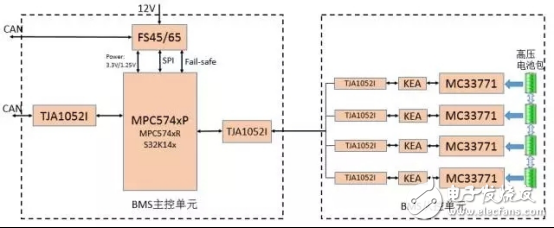 在该方案中,主控单元采用的MPC574xP是一款基于Power architecture、具有lock step核的高性能、高安全性MCU。