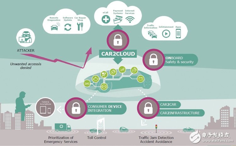 图1:车联网时代需要更高的安全性,才能降低数据受黑客攻击的可能性(来源:英飞凌)