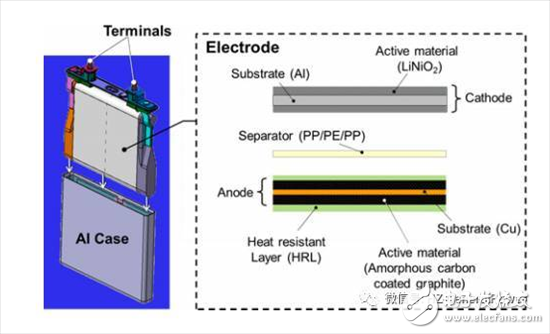 对于碰撞,总的思路是通过车身和电池包本身的结构强度来进行防护,而在电芯层面,丰田是下了一番工夫研究,采用了“隔热层”(Heat Resistant Layer,HRL)设计。HRL也被用来应对电芯的内短路风险,因为电芯的内短路,目前整个系统层面是毫无应对方案的。