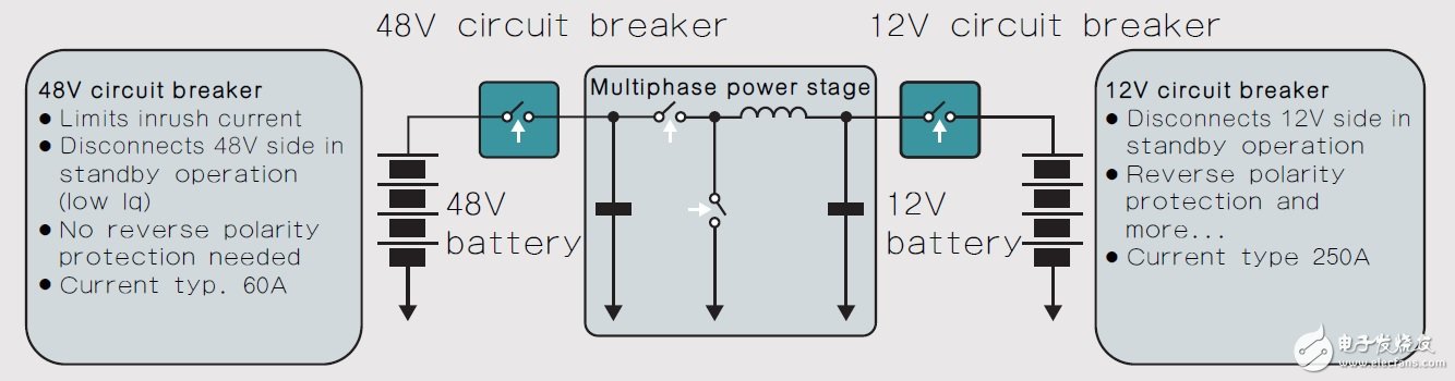 管理好混合动力汽车和电动汽车中的电池要求使用高压技术。结合了12V和48V电池的双电压系统需要双向的直流/直流转换,如图6所示,目的是保护电路,支持架构化功能。