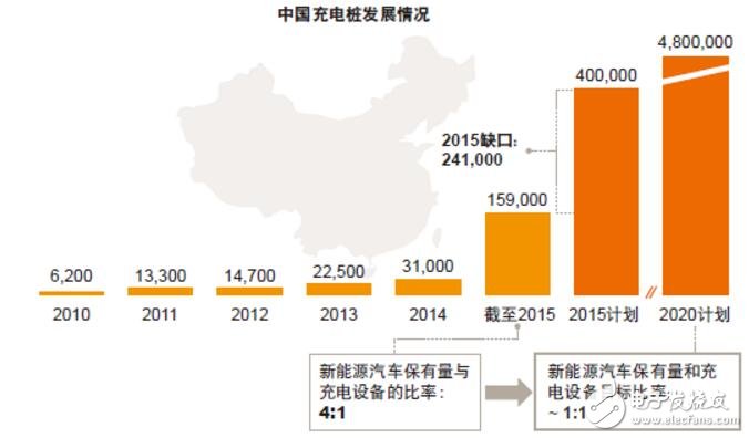 基础设施方面,据统计截至2015年底,我国已建成充电桩15.9万个,缺口24.1万个,平均每4台新能源车共享1个充电桩。虽然还不能满足新能源汽车保有量和充电设备目标比率 1:1 配比,但随着电动车规模化、国家政策支持加强、充电标准成熟、电网企业加大投入、产业对私开放,我国充电桩产业也在逐步规模化并实现盈利,预计2020年达到480万个。
