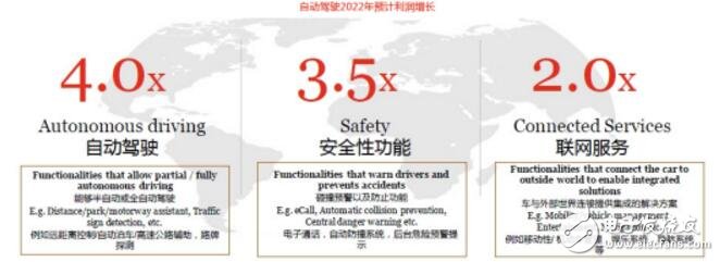 和新能源汽车一样,虽然目前国内车市整体大环境在逐步回归温和增长,智能网联汽车市场规模却在不断扩大。来自普华永道统计数据显示,到2022年,我国智能网联汽车市场规模将达1550亿美元,是现在的3倍。其中自动驾驶作为智能网联最核心的领域之一,预计到2025年,市场上出售的新车中20%的车辆具有明显的自动驾驶功能,到2030年自动驾驶车辆的市场渗透率为15%-20%,届时人们可能会看到没有方向盘的自动驾驶车辆。