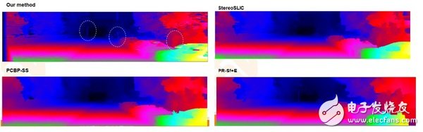 △Our为中科慧眼算法小障碍物的双目配准效果,其它为国际流行传统方法的处理效果