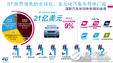 2015年,整个汽车事业部产品收入达到21亿美元,汽车生意占整个ST集团40%左右。Edoardo MERLI 表示,在整个汽车行业里,我们已经耕耘了30多年,积累了丰富大量的经验,在大部分市场里我们处于绝对领先的位置。
