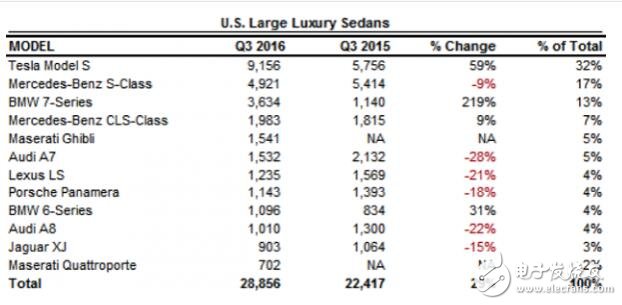 根据这张彭博社公布的图表,奔驰S-Class级别轿车相比较去年同期下滑了9%,市场占比为17%;宝马7系轿车相比较去年同期增长了219%,市场占比为13%的。而伴随着即将上线的Model 3,特斯拉将会进一步对非高端汽车市场产生冲击,官方预估销量达到40万台。
