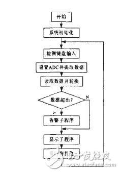本系统的软件设计包括了系统主程序、键盘扫描子程序、中断子程序、数据采集与A/D转换子程序、LCD及LED指示灯显示子程序、告警信号子程序、看门狗定时器与电源监视器子程序等。