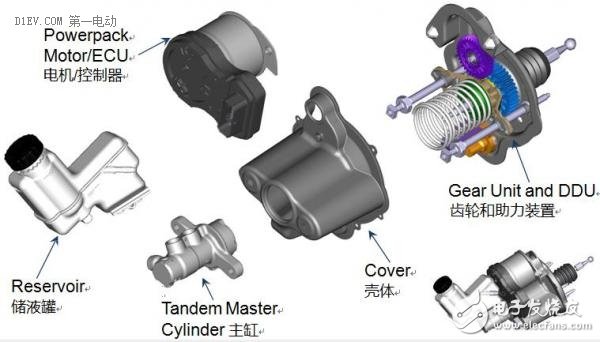 这种方案无真空助力器和EVP,也没有液压泵或蓄能器等部件,取而代之使用高性能电机,通过齿轮机构驱动活塞直线运动,以产生制动主缸压力。较之普通制动系统,它更轻巧,系统响应更快,能够显著地提升建压速度,有效地缩短制动距离,满足新型高级驾驶辅助系统对制动压力控制动态特性的更高要求。协调再生制动功能和基于ESP/ESC、EHB技术类似,同样能实现高效的制动能量回收。