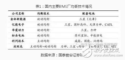 表1:国内主要BMS厂均衡技术情况