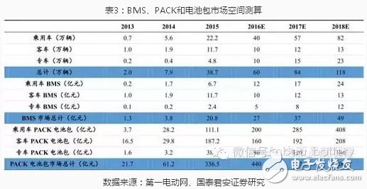 BMS单价较低,仅布局BMS市场空间较小,2016年市场空间为30亿左右,但是如果利用BMS作为核心技术导入PACK,则市场空间大得多,2016年PACK电池包空间达440亿,即使扣除电芯部分,市场空间也有140亿。