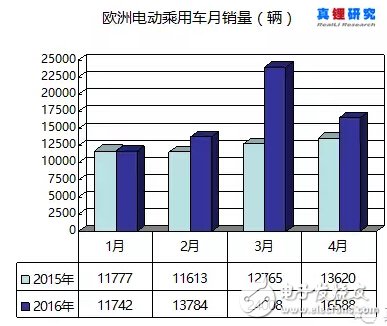 真锂研究的初步统计数据显示,2016年前4个月,欧洲地区共有53款电动乘用车产品实现了销售,合计销量66122辆,与2015年同期49775辆相比,增长了32.84%。