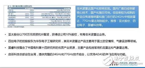 毫米波雷达国产化即将实现,但目前较为成熟的产品仅有湖南纳雷和厦门意行的24GHz中短距雷达。