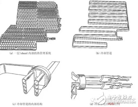 Tesla Motors公司的Roadster纯电动汽车采用了液冷式电池热管理系统。车载电池组由6831节18650型锂离子电池组成,其中每69节并联为一组(brick),再将9组串联为一层(sheet),最后串联堆叠11层构成。电池热管理系统的冷却液为50%水与50%乙二醇混合物。