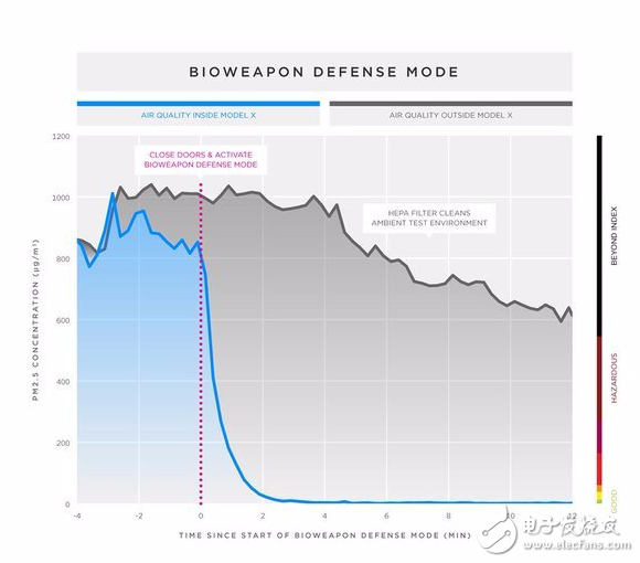 Tesla 表示,「生物武器防御模式」并非宣传推广手法,而是真正能够在生化袭击时,让使用者可以在车厢内保命的功能。虽然不知道当遇上炭疽一类生化武器时,Tesla 的 Model X 是否能够真正发挥功效,但对于空气污染严重的地区来说,应该能让车主们唿吸到清新的空气。