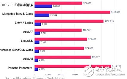 2、大型豪华车市场:其实对美国的有钱、高知来说,Tesla也做得很成功,以2015年的销量来说,它已经做到了这个领域最优秀了,击败了原有的传统车企对此块市场的占领。如图1所示,这里需要注意的是,即使在这个领域占据如此地位,由于大电池纯电动汽车本身的成本因素,Tesla还不赚钱。