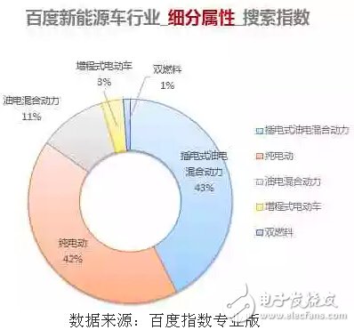 总体来看,新能源汽车可分为混合动力、纯电动、燃料电池和其他类型,在混合动力这个类别中,根据省油效率从高到低,又分为增程式电动车、插电式混合动力和普通混合动力三类。百度发布的报告显示,插电式油电混合动力(43%)与纯电动(42%)汽车的消费者关注度总和占据新能源汽车的85%,但是两者之间的差距并不明显。