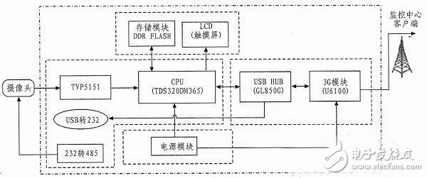 由于3G无线网络技术和嵌入式技术的不断发展,推动了视频监控领域的迅速发展,尤其是在汽车监控领域。3G无线网络覆盖面积广,可灵活接入,相比之前车载视频监控终端所采用GPRS,CDMA等无线通信技术,传输速度快了很多,但是3G技术在汽车监控领域的实际应用不够完善。DM365支持 H.264视频编码技术,在网络带宽有限的条件下,保证了视频数据的高质量传输。U6100模块可以集成到任何3G移动设备,并且可以接入到HSDPA、 HSUPA、UMTS等高速网络。所以我们设计了以TI的DM365为核心,以U6100为传输模块的车载视频传输模块。