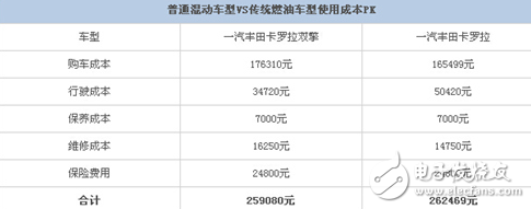 卡罗拉双擎10年15万公里总使用成本:176310+34720+7000+16250+24800=259080元