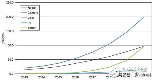 图2 2013∼2020年各类ADAS感测器出货量分析