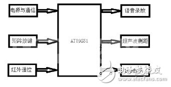 其余单元功能如下,LCD单元用来显示实验数据,便于系统调试。矩阵键盘单元用来实现按键输入;红外遥控单元负责整个系统的触发,一体化红外接收头与单片机Int0连接,当用户按下遥控器按键时,Int0产生中断,单片机发出语音播报指令。