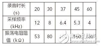 表2 录音时长、采样频率与振荡电阻阻值的对应关系