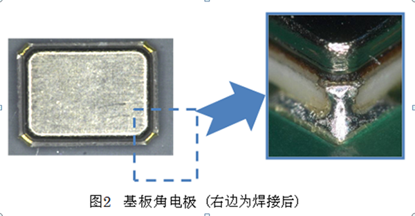 此外,为了提高焊料圆角的能见度,扩大了基板角部分电极的面积(如图2)。因此,即使是2016尺寸也能识别焊接圆角。