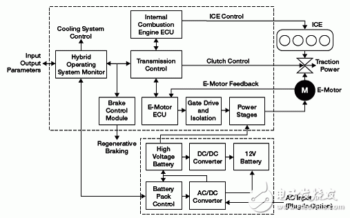 混合动力汽车将一个内燃机(ICE)与电池供电的电机(E-motor)相结合,共同驱动传动系统,提高了节油效果并降低了有害气体的排放。除了内燃机控制装置,还需要其它模拟来控制电子牵引电动机,对电池再行电并管理用于运行辅助设备所需的模块,如开关控制系统和燃油和水泵。飞思卡尔的MCU系列产品包括大量的电机控制解决方案,带有一个可用的低水平软件库。我们不断为混合动力车中的电机架构开发带有专用外设集的电机控制解决方案。例如,我们的智能分布式控制(IDC)装置整合了业界领先的16位S12 MCU,具有模拟、混合信号和网络物理接口,可以为电池监控提供可靠的、成本效益型系统级封装(SiP)解决方案。