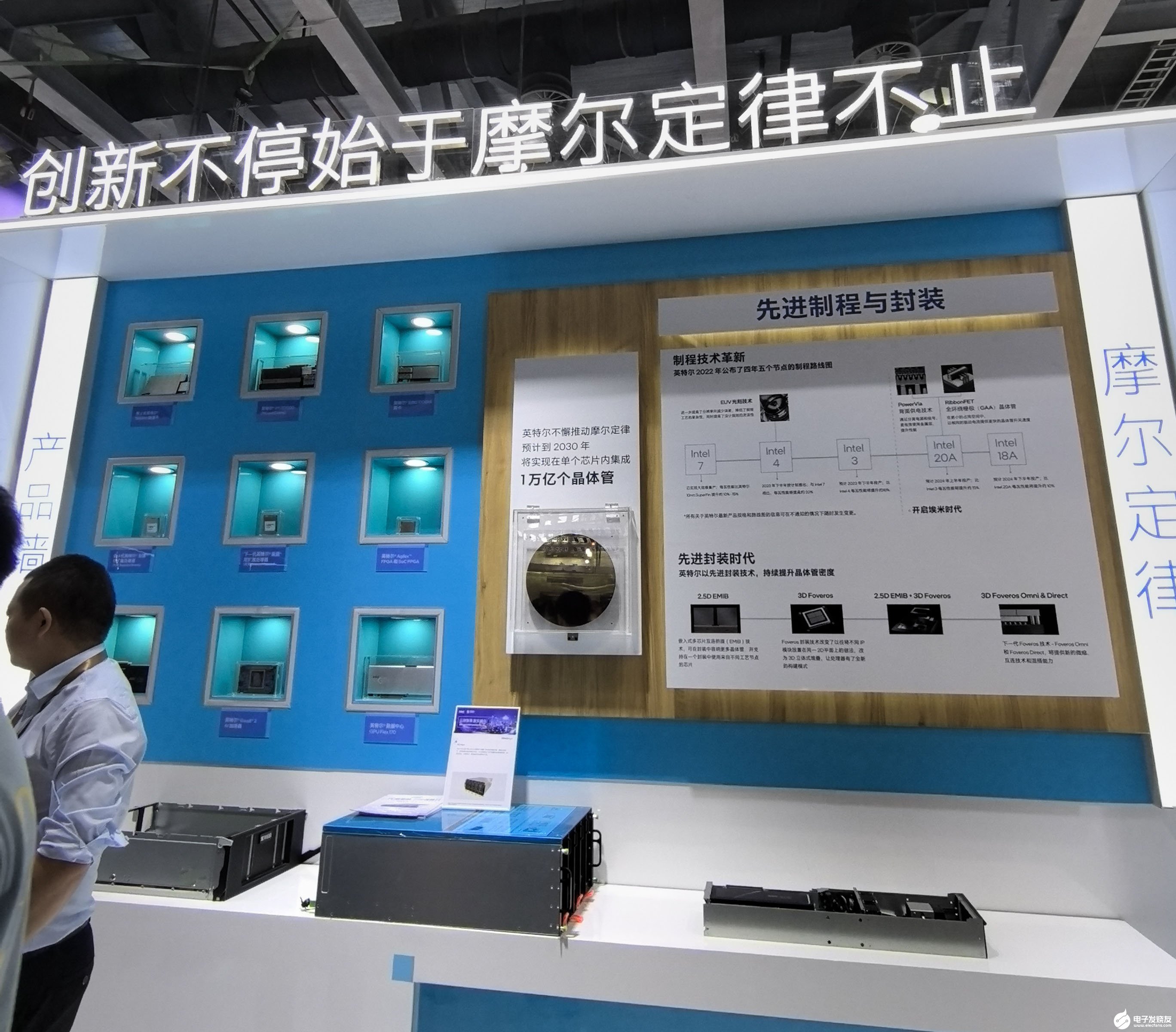 在英特尔展台,产品墙区域展示了英特尔的最新产品,其中包括第二代英特尔®NetSec加速卡、英特尔®25GbE网卡、英特尔®100GbE网卡、下一代英特尔®至强®可扩展平台、英特尔® Agilex™ FPGA 和 SoC FPGA等。