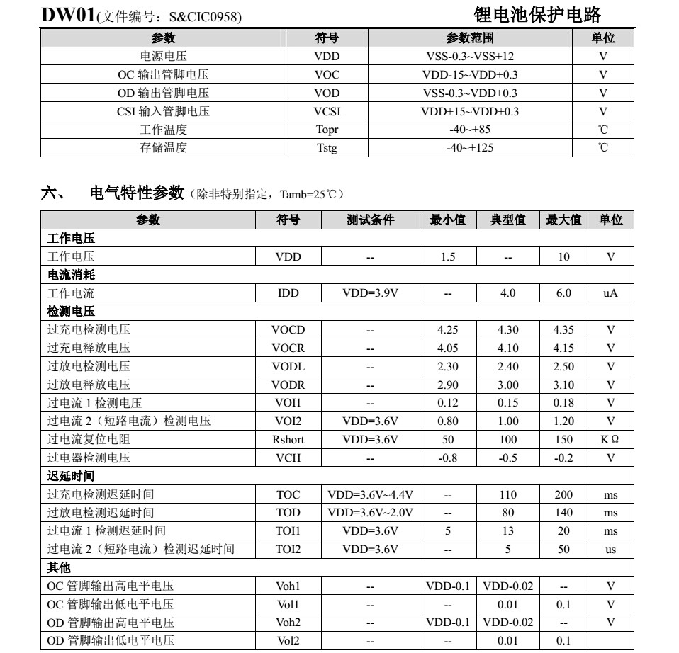 | 深圳市百盛新纪元半导体有限公司介绍: | DW01是单节锂电池保护IC 是最常有的锂电池保护IC,跟8205(MOS管)组成完整的锂电池保护电路。 |
