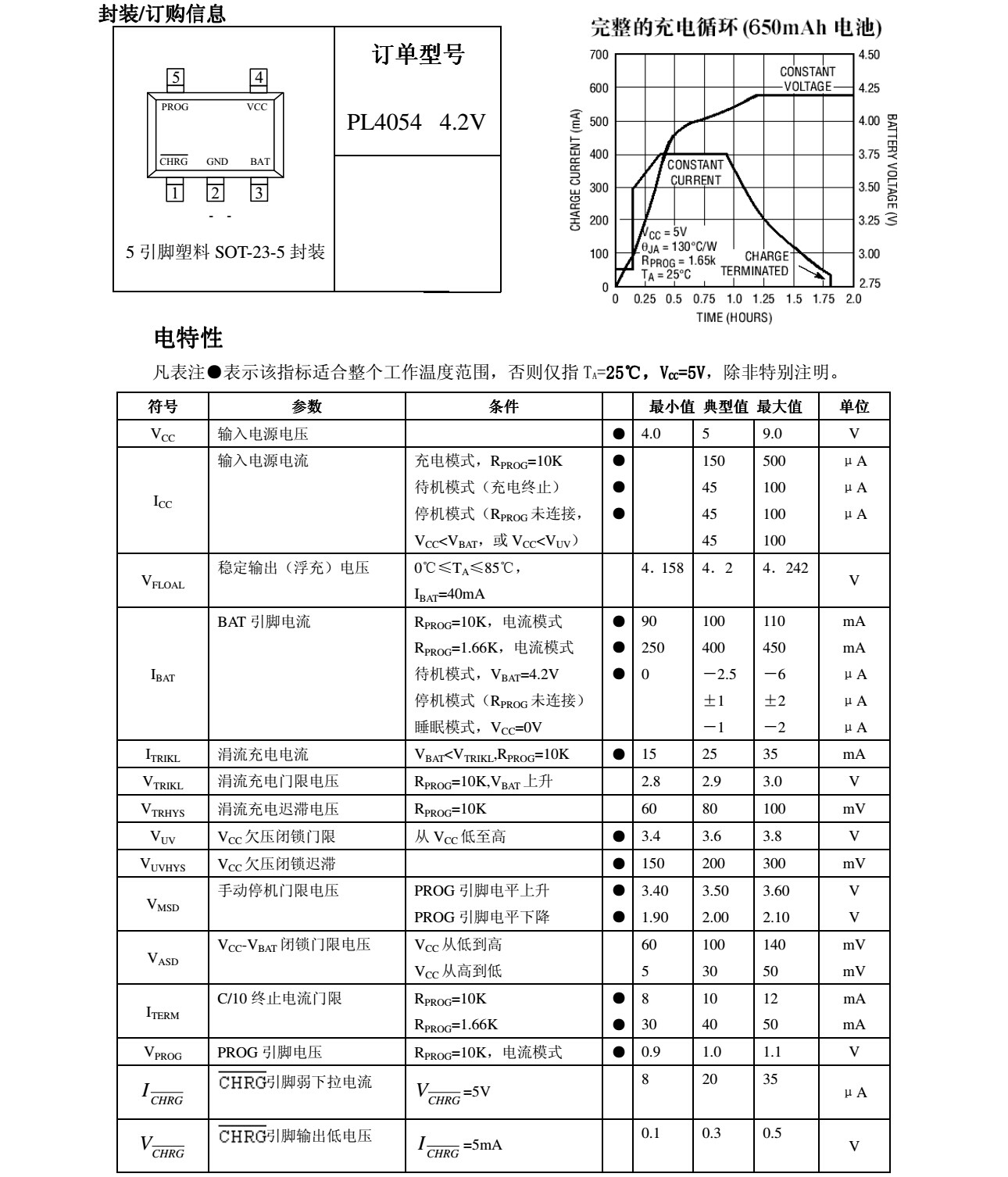 | 深圳市百盛新纪元半导体有限公司介绍: | PL4054是单节锂电池充电管理IC; 充电电流:0.1A~0.8A,线性 双指示灯,适合USB 5V输入。 |