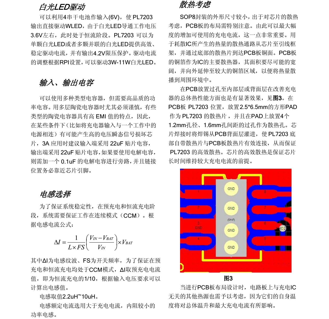 | 深圳市百盛新纪元半导体有限公司介绍: | PL7203是单节锂电池充电管理IC; 充电电流:2A~3A,开关型 双指示灯,适合USB 5V输入。 |