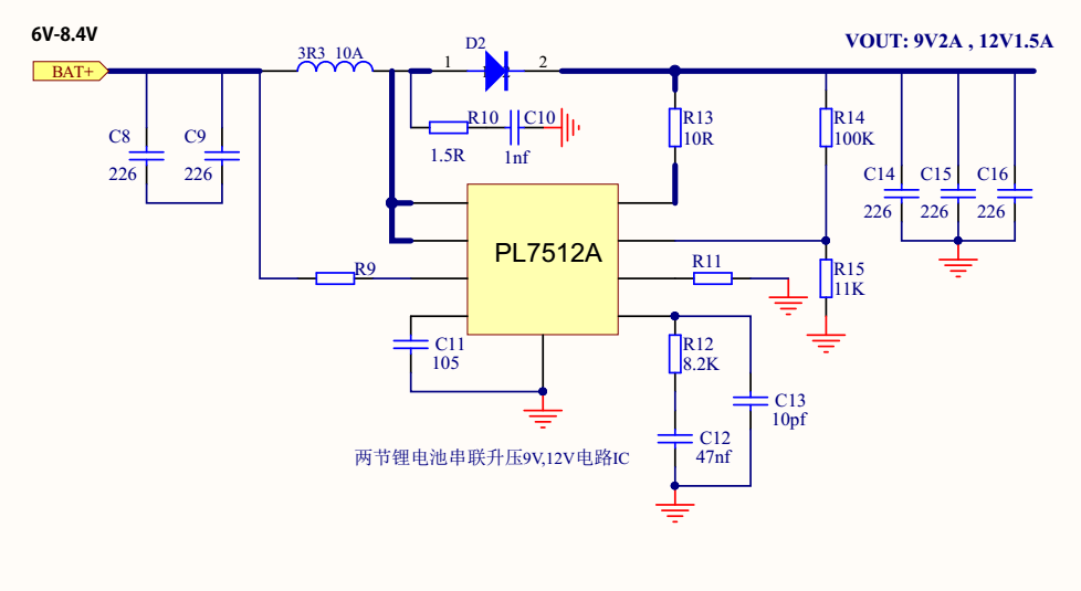 PL7512A是颗DC-DC升压转换器,支持宽电压输入,能满足两节/双节锂电池串联输入,升压输出9V或者12V高压。