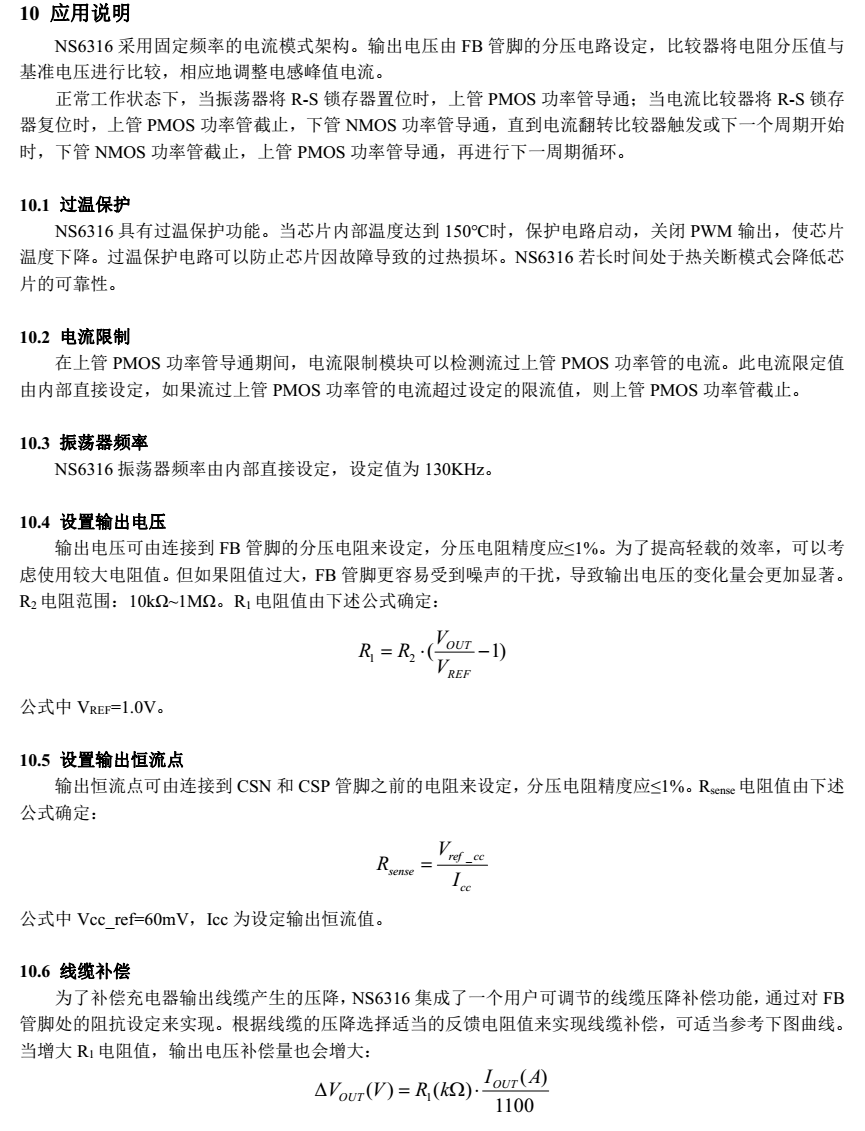 NS6312 / NS6316适用应用于车充等降压电路应用中,具有线缆电压补偿功能,可以补偿充电线缆产生的压降,而且补偿电压大小可以通过FB的上拉电阻阻值来进行调整。