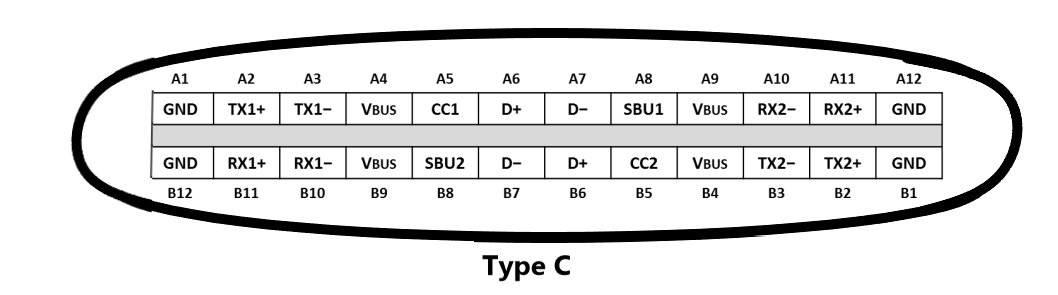 下图是USB type C接口的标准引脚:24 PIN,可以看出把普通USB接口兼容,和影像,数据传输(如HDMI、DVI、VGA接口)都能兼容,就是说以后只需要一条USB Type C接口即可完成。我们这次讲的是供电充电这块的,所以当USB type C只用于供电时(如充电宝,适配器,车充,排插等),可以不需要标准的24 PIN,可以去掉如A2,A3,A8,A10,A11,B2,B3,B8,B10,B11等PIN脚,这些USB 接口厂商已经有这样的,可以省成本.