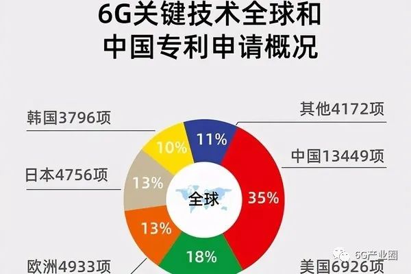中国国家知识产权局公布的《6G通信技术专利发展状况报告》显示,在全球申请专利的约3.8万项6G技术中,中国以35%的占有率居首位。《日经新闻》的调查结果也显示,中国拥有世界上最多的6G专利,其中大部分专利都是华为申请的。