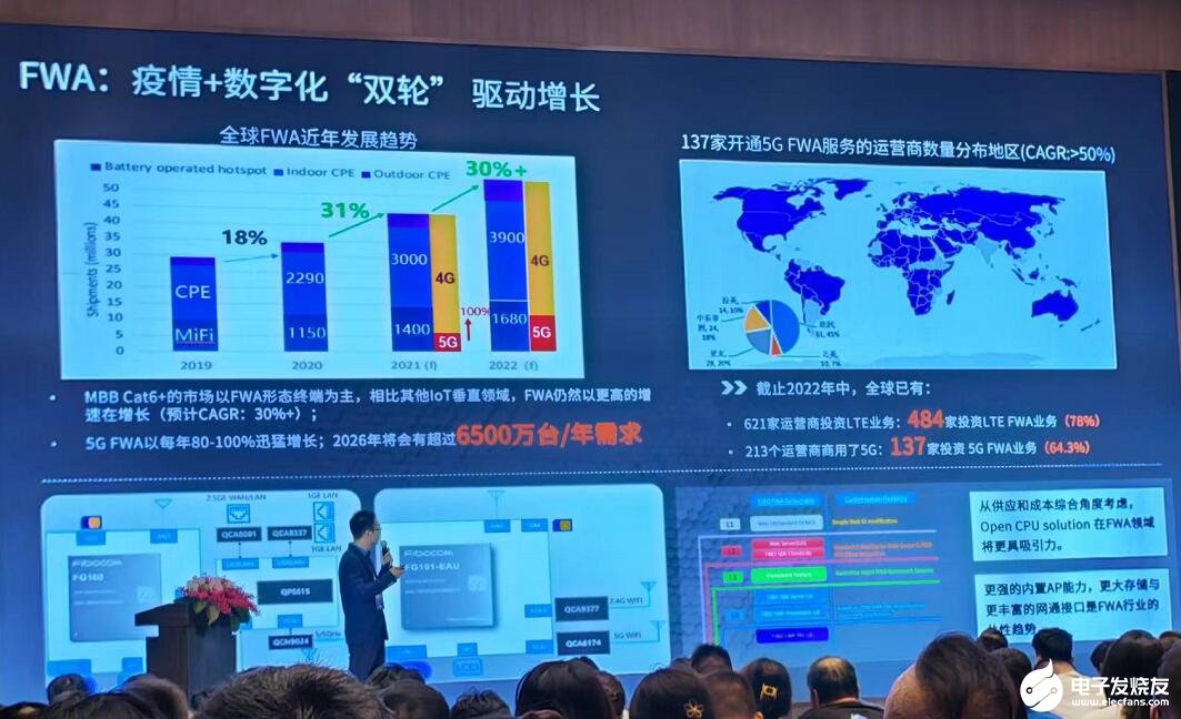 Lily点评:MBB Cat6+的市场以FWA形态终端为主,相比其他IoT垂直领域,FWA预计以更快的速度增长。FWA的优势包括超低延迟和快速数据处理,尽管毫米波和CBRS相对于其他5G频谱覆盖范围有限一直是一个限制因素,要求基站和客户终端设备(CPE)的位置尽可能靠近。