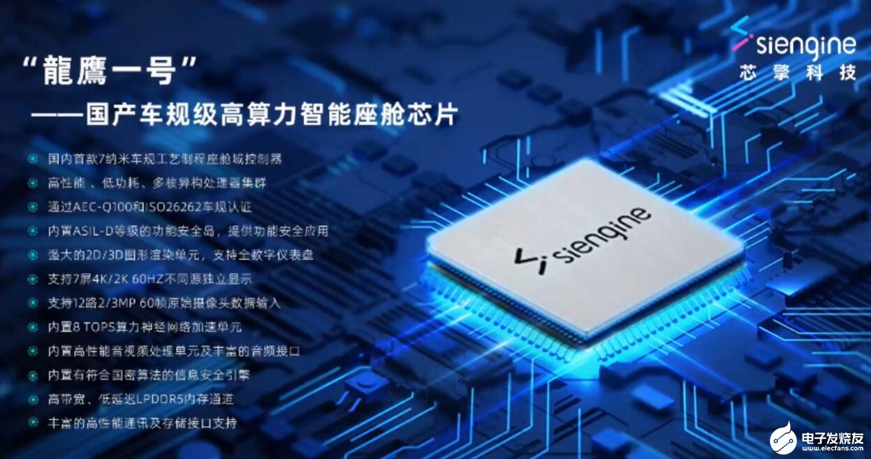 “龍鹰一号”集成了87层电路、88亿晶体管,芯片面积仅有83平方毫米,CPU算力能够达到90~100K DMIPS,GPU算力900+GFLOPS,NPU算力达到8TOPS。支持12路2/3MP 60帧原始摄像头数据输入,支持7屏4K/2K 60Hz不同源的独立显示,内置了ASIL-D等级的功夫安全岛,助力安全应用。“龍鹰一号”几项核心参数和高通的旗舰芯片8155已经非常接近。