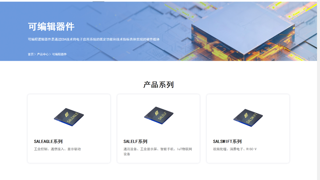 产品中心集中展示了安路科技的主营产品,详情页里包含产品特色、选型表、