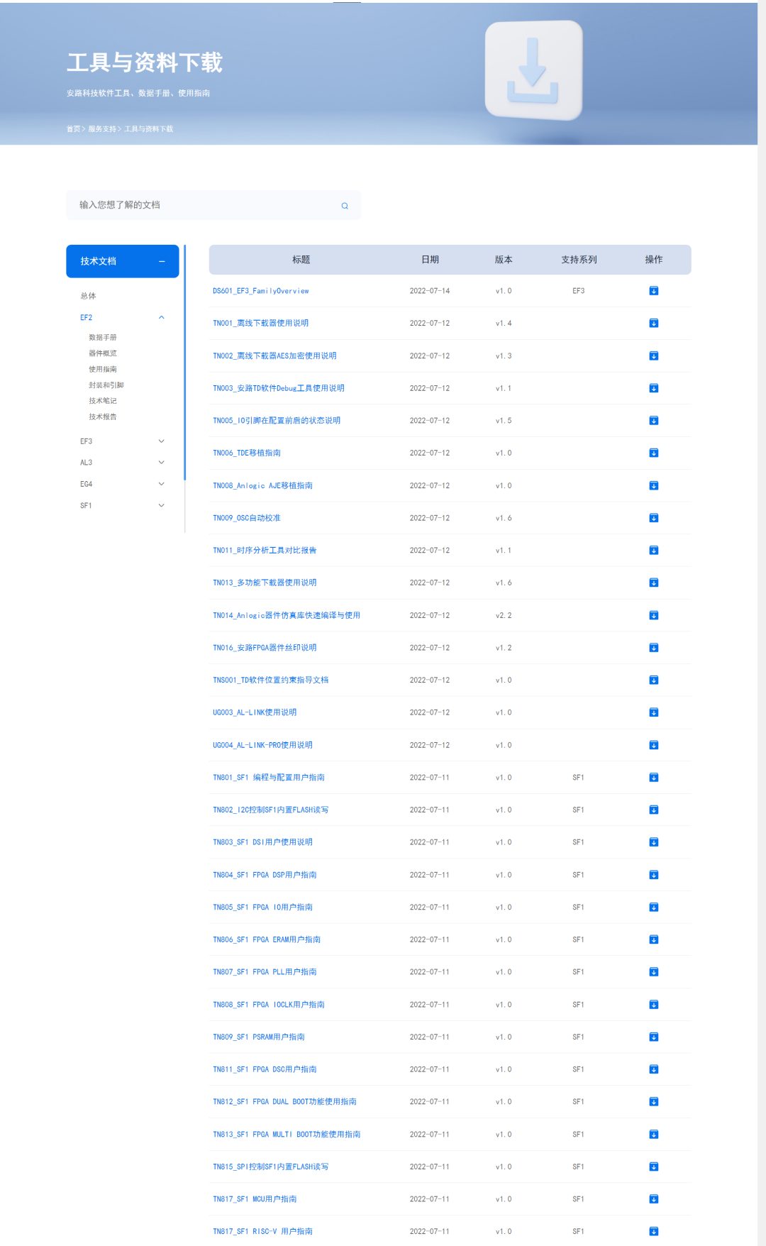 芯片系列的IP及参考设计、软件工具、数据手册、使用指南等分类,可登录后按照提示获取。
