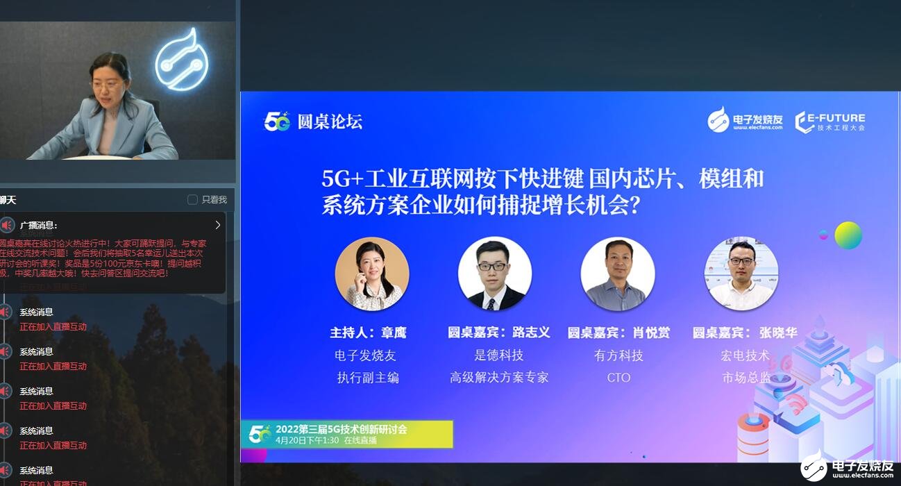 4月20日,由电子发烧友主办的2022第三届5G技术创新研讨会的圆桌论坛上,来自是德科技高级解决方案专家路志义、宏电技术市场总监张晓华和有方科技CTO肖悦赏带来了他们的前瞻观点和5G与工业互联网融合当中痛点问题的分析。